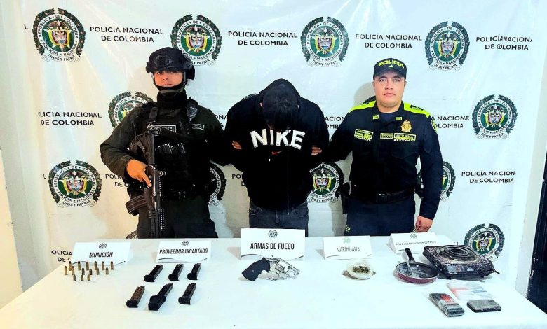 El capturado, conocido con el alias de ‘Zambrano’, fue puesto a disposición de la autoridad judicial competente como presunto responsable de los delitos de fabricación, tráfico y porte ilegal de armas de fuego, municiones y accesorios, y tráfico, fabricación o porte de estupefacientes.