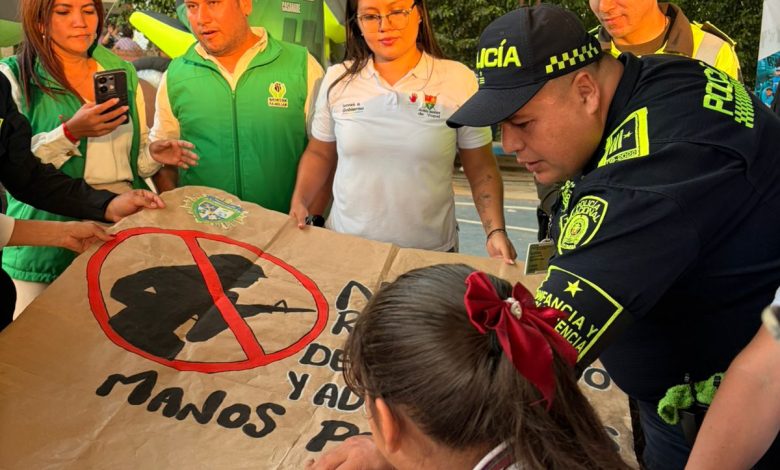 La Policía Nacional, a través del Grupo de Protección a la Infancia y Adolescencia, desarrolló una actividad de impacto denominada “Día Internacional de las Manos Rojas”, en articulación con las autoridades territoriales como el Instituto Colombiano de Bienestar Familiar (ICBF), la Defensoría del Pueblo, la Secretaría de Gobierno Municipal y las diferentes especialidades de la Policía Nacional.