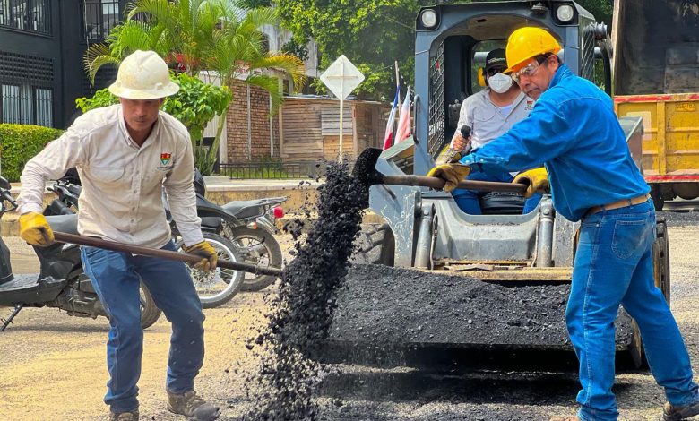 La jornada de recuperación inició en la carrera 27, entre calles 11, 12, 13 y 14, donde se intervinieron zonas que presentaban deterioro considerable. De igual forma, se rehabilitaron puntos sobre la carrera 27 y 26 con calle 16, frente al CAI del barrio El Hobo, beneficiando directamente a conductores, motociclistas y peatones que diariamente transitan y hacen deporte en este sector.