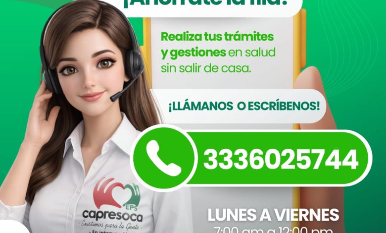 Capresoca EPS habilita nuevo número de contacto para la gestión de trámites y servicios de salud, sin salir de casa: Contac Center 3336025744