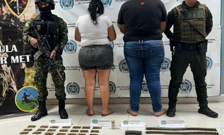 La Policía Nacional en el departamento del Meta, a través del Grupo de Reacción Inmediata Motorizada con apoyo de unidades del GAULA Militar, logran la captura en flagrancia de un hombre y una mujer de 22 y 41 años de edad, por el delito de fabricación, tráfico, porte o tenencia de armas de fuego, accesorios, partes o municiones.