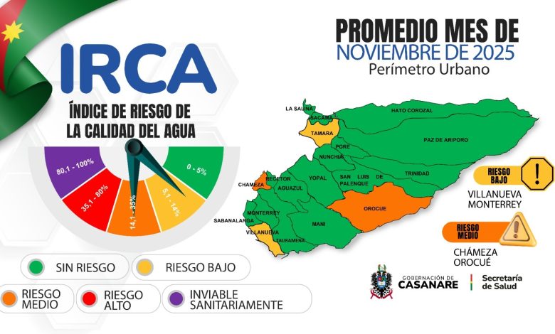 Casanare publica el comportamiento del riesgo en la calidad del agua durante noviembre de 2025
