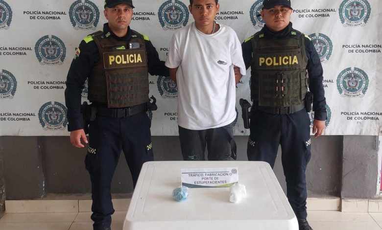 En desarrollo de actividades de patrullaje en el barrio El Minuto de Dios, en El Carmen de Bolívar, la Policía Nacional logró la captura de un hombre conocido como alias “Miguelito”, de 24 años, quien presenta 14 anotaciones judiciales, entre ellas 11 por tráfico, fabricación o porte de estupefacientes y 3 por porte ilegal de armas de fuego.