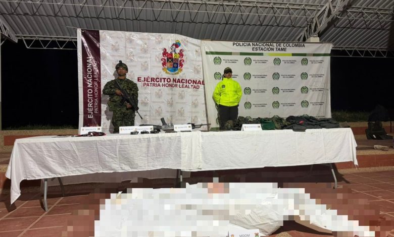 Los hechos ocurrieron en la vereda Agua Blanca, jurisdicción del municipio de Tame, Arauca, donde las tropas lograron además la incautación de un fusil, tres proveedores y abundante material de intendencia.