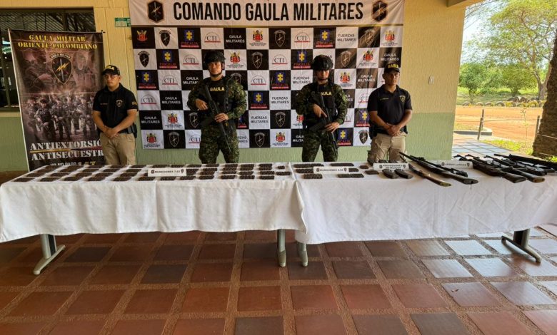 En el marco del Plan Estratégico Ayacucho Plus, la Vigésima Octava Brigada, en el desarrollo de operaciones militares ofensivas, orientadas al debilitamiento de los grupos armados organizados, a través del Gaula Militar Oriente colombiano, en un trabajo coordinado con el Batallón de Inteligencia Militar N.º 8 y la Sijín de la Policía Nacional, se logra en las últimas horas la incautación de abundante material de guerra, perteneciente al Frente José Daniel Pérez, del ELN.