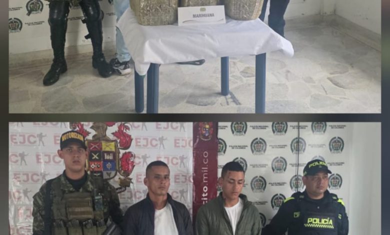 En controles de Semana Santa, Ejército y Policía capturan a dos hombres con 15 kilos de marihuana en Gigante, Huila