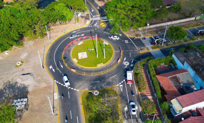Esta glorieta es una moderna obra de infraestructura vial, con un diámetro de 45 metros, tres carriles internos de 4 metros cada uno, que mejoran el flujo vehicular desde y hacia la zona céntrica de la capital. Así mismo, cuenta con su debida señalización horizontal, sistemas hidráulicos, iluminación y paisajismo.