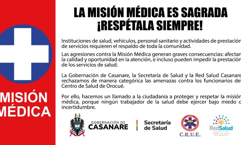 La Misión Médica, que incluye instituciones, vehículos, personal sanitario y actividades de atención, es sagrada. Atentar contra ella no solo vulnera a los trabajadores de la salud, también pone en riesgo la vida de la comunidad al afectar la calidad, la oportunidad e incluso la continuidad de los servicios.