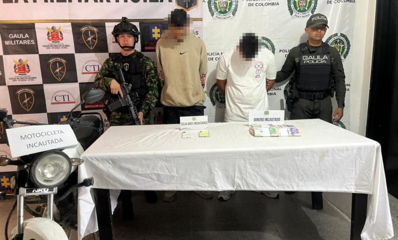 Los detenidos registran antecedentes por delitos como extorsión, secuestro, hurto calificado, porte ilegal de armas y tráfico de estupefacientes. Durante el procedimiento fueron incautados dos teléfonos celulares y una motocicleta.