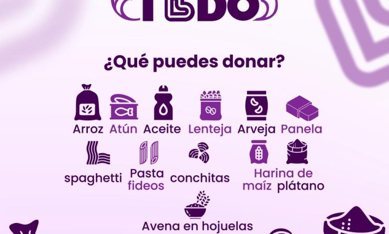 En cuanto a la participación ciudadana, se pueden donar productos como arroz, lentejas, arvejas, espaguetis, atún, panela, aceite, avena en hojuelas y harinas de maíz o plátano.