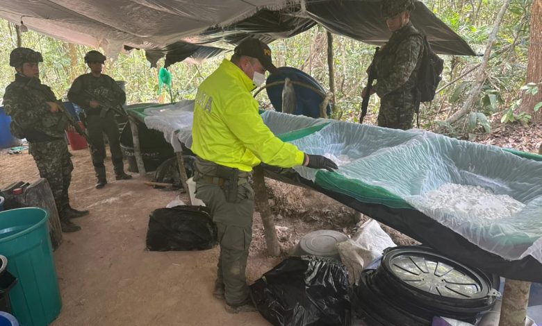 destrucción de dos laboratorios para el procesamiento de clorhidrato de cocaína, así como la incautación de 1.610 kilogramos de insumos sólidos y 2.695 galones de insumos líquidos, debilitando significativamente la capacidad de producción de estas estructuras criminales.
